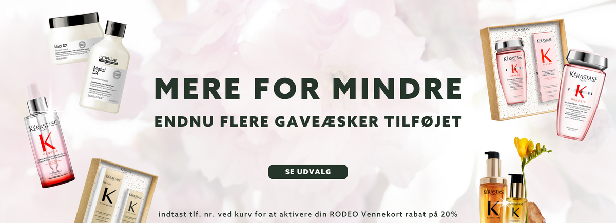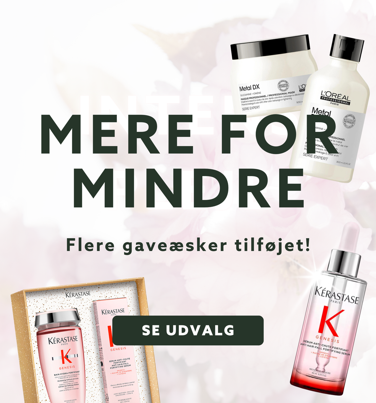 Vælg en gaveæske og få mere værdi for pengene. Når du køber en gaveæske, sparer du markant i forhold til at købe produkterne enkeltvis, samtidig med at du får en komplet hårplejerutine samlet i elegant indpakning. Vi udvider løbende vores udvalg med nye eksklusive æsker, så du altid kan finde den perfekte gave eller lidt selvforkælelse.