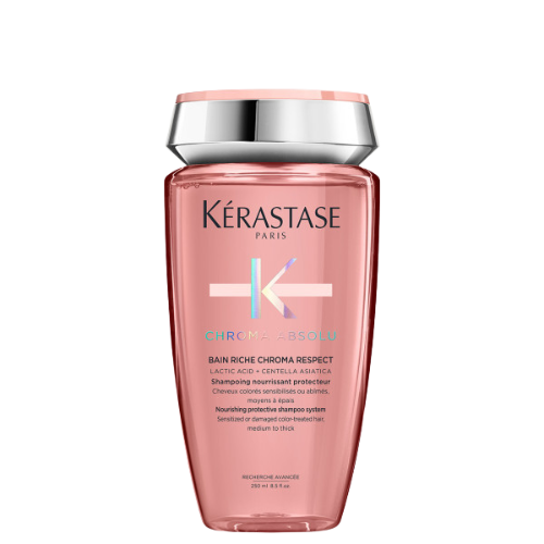 Oplev den banebrydende Chroma Absolu-teknologi med Kérastase Bain Riche Chroma Respect 250 ml – en luksuriøs shampoo specielt udviklet til farvebehandlet hår, der har brug for ekstra næring og beskyttelse. Denne innovative formel er beriget med plejende syrer og Centella Asiatica, som arbejder i dybden for at afhjælpe de mest almindelige udfordringer ved farvet hår: porøsitet, knækket hår, krus på grund af farve og en mat eller ustabil hårfarve.
