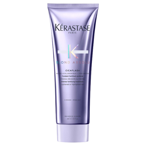 Denne let lavendelfarvede mælkede gel med opalglans har den genopbyggende kraft fra en maske og den lette finish fra en balsam. Den genopbygger intensivt sensibiliseret hår og nærer fibret i dybden. Det sensibiliserede, lysnede hår bliver øjeblikkeligt glat, styrket og blødt. Cicaflash fra Kérastase er ideel til alle toner af faux, blonde hår og genopbygger fibret, så brud og slid modvirkes. Håret er fugtet, let og strålende.