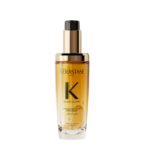 Den ikoniske Elixir Ultime hårolie fra Kérastase er nu tilgængelig i en luksuriøs genopfyldelig glasflakon med en refill-olie.