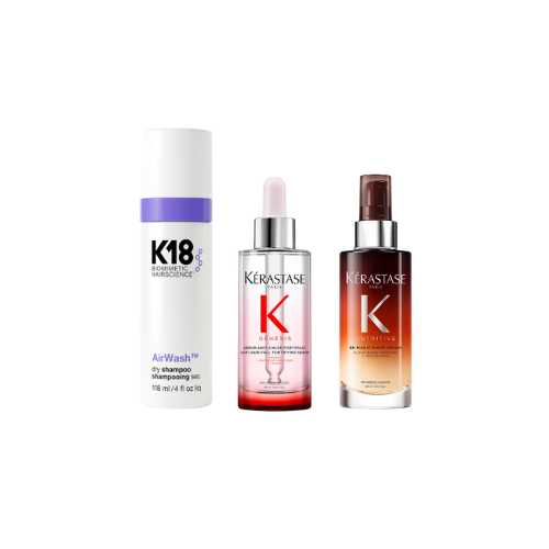 Forkæl dit hår med denne eksklusive trio, der kombinerer tre luksusfavoritter fra Kérastase og K18. Sættet plejer, styrker og forfrisker håret fra rod til spids, både dag og nat. Perfekt til dig, der ønsker et sundt, stærkt og velplejet hår med naturlig glans og balance.